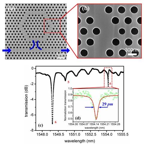 ICCSZ訊 光子晶體是一種周期性的光學(xué)結(jié)構(gòu),具有光子帶隙的特性,能夠有效控制光波的傳輸。在完美光子晶體結(jié)構(gòu)中引入一些缺陷,就會(huì)形成光子晶體微腔。光子晶體微腔因其品質(zhì)因子高、模式體積小、尺寸小等優(yōu)點(diǎn),已經(jīng)成為實(shí)現(xiàn)光子集成回路的一種有前景的平臺(tái)。在二維光子晶體中,引入一個(gè)六邊形的缺陷就可以形成一個(gè)光子晶體環(huán)狀腔。光子晶體環(huán)狀腔具備如下優(yōu)點(diǎn):尺寸小、多模特性、結(jié)構(gòu)設(shè)計(jì)靈活、可通過耦合強(qiáng)度的設(shè)計(jì)實(shí)現(xiàn)上下載濾波器的正向反向下載。目前,光子晶體環(huán)狀腔已被廣泛應(yīng)用于濾波器、波分復(fù)用解調(diào)器、激光器、功分器、傳感器等。其中大部分工作是基于介質(zhì)柱型的光子晶體,并且多為模擬結(jié)果。2013年,有研究人員實(shí)現(xiàn)了基于空氣孔型光子晶體的環(huán)狀腔,不過其品質(zhì)因子僅為300。