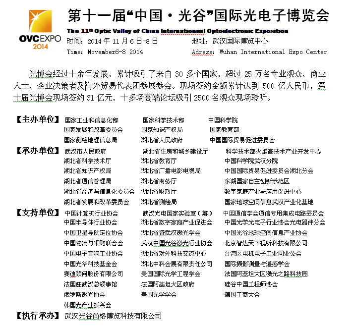 摘要:光博會經(jīng)過十余年發(fā)展,累計吸引了來自30多個國家,超過25萬名專業(yè)觀眾、商業(yè)人士、企業(yè)決策者及海外貿(mào)易代表團參展參會?,F(xiàn)場簽約金額累計達到500億人民幣,第十屆光博會現(xiàn)場簽約31億元,十多場高端論壇吸引2500名觀眾現(xiàn)場聆聽。