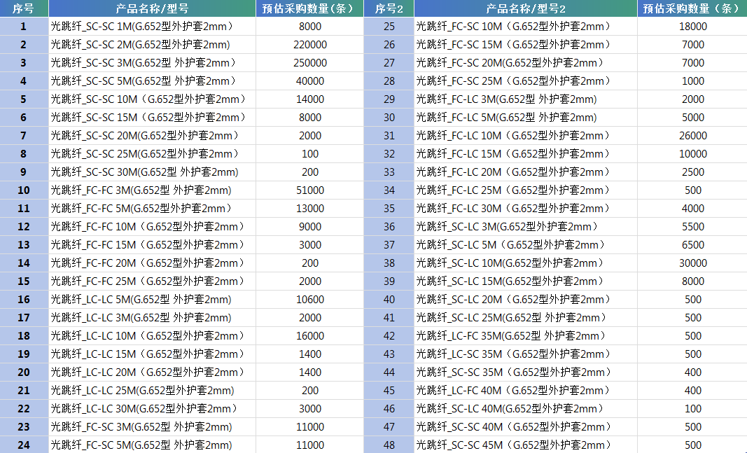ICC訊 2025年11月18日,中國聯(lián)合網(wǎng)絡(luò)通信有限公司湖北省分公司正式發(fā)布2025年11月-2026年4月光跳纖集中采購項(xiàng)目招標(biāo)公告(招標(biāo)編號(hào):HBXT-2025-14413),委托湖北信通通信有限公司作為招標(biāo)代理機(jī)構(gòu)。本項(xiàng)目自籌資金已落實(shí),現(xiàn)公開招標(biāo)采購814000條單模光跳纖,采購預(yù)算為176萬元(不含稅),旨在保障工程建設(shè)順利開展。