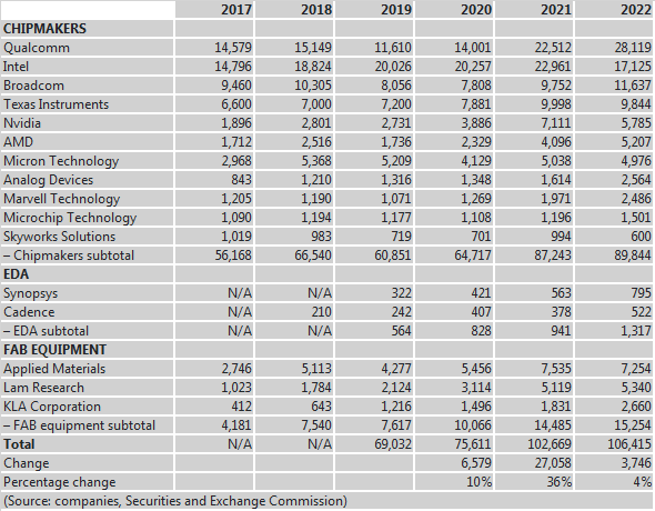這意味著,其中一些公司今年可能會遭遇硬著陸,除非它們和它們的中國客戶能夠找到并利用允許它們繼續開展業務的漏洞。排在前列的可能是晶圓廠設備制造商和電子設計自動化軟件(EDA)開發商,美國10月7日宣布的出口法規剝奪了它們在中國的機會。