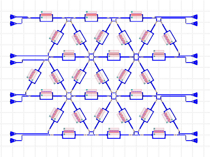 圖2: 使用PhotoCAD生成的三角MZI網格布局