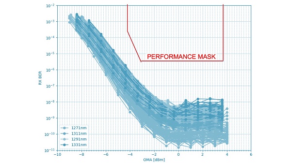 在功耗優(yōu)勢(shì)之外,Broadcom在性能裕度方面也取得顯著進(jìn)展。圖4展示了TH5-Bailly系統(tǒng)全部512通道的最新誤碼率曲線,這些生產(chǎn)數(shù)據(jù)充分證明了Broadcom高度集成的光學(xué)解決方案具備優(yōu)異的性能裕度。通過(guò)制造過(guò)程中的TP1/TP4鏈路驗(yàn)證以及生產(chǎn)測(cè)試中的后FEC流量特性分析,該性能表現(xiàn)已具備規(guī)模化部署條件。