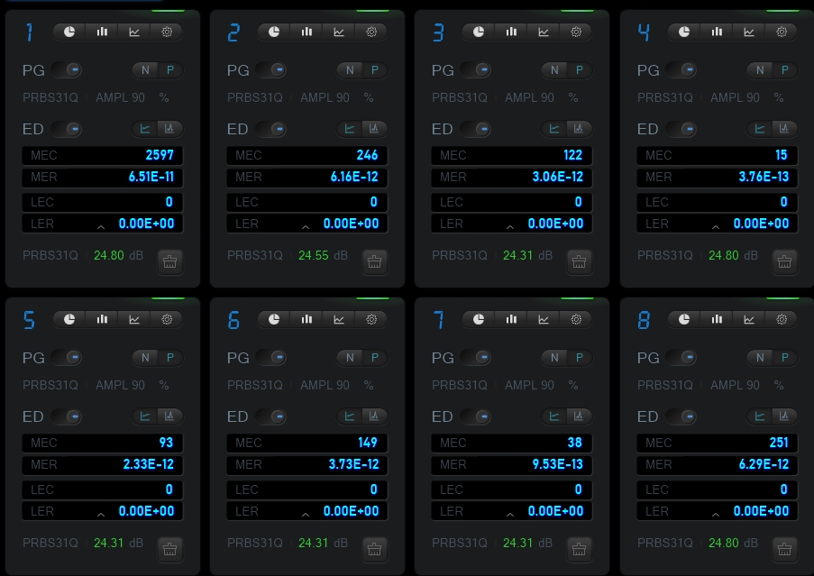 華云光電800G OSFP 2xFR4硅光引擎集成了光電探測器、TIA、MZ調(diào)制器,采用高可靠性CW光源,配合Broadcom內(nèi)置Driver的7nm DSP直驅(qū)芯片,極大簡化了光模塊內(nèi)部工藝設(shè)計和易于批量制造。該產(chǎn)品三溫功耗<16W,發(fā)射消光比ER典型值4dB,TDECQ典型值1.5dB,接收典型誤碼率1E-12,三溫工作溫度環(huán)境下產(chǎn)品傳輸性能穩(wěn)定、關(guān)鍵指標(biāo)優(yōu)良,采用Dual Duplex LC連接器在單模光纖上實現(xiàn)最大2km的傳輸距離。光模塊內(nèi)置信道質(zhì)量監(jiān)測單元,通過DOM數(shù)據(jù)(溫度、光功率)預(yù)測鏈路穩(wěn)定性,支持光鏈路實時信噪比(SNR)檢測,提前告知系統(tǒng)調(diào)整FEC糾錯策略,模塊同時支持鏈路實時誤碼率監(jiān)測上報,系統(tǒng)可以通過查詢光模塊實時了解鏈路運行誤碼率情況,實現(xiàn)網(wǎng)絡(luò)問題提前預(yù)警和及時處理,目前產(chǎn)品已在英偉達(dá)交換機(jī)長時間傳纖跑流,傳輸性能穩(wěn)定可靠。