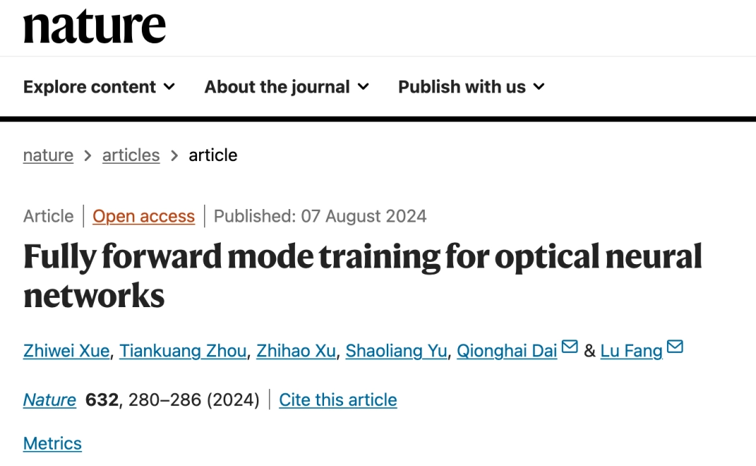 該研究成果以“光神經網絡全前向訓練”為題,于北京時間 8 月 7 日晚在線發表于《自然》期刊。