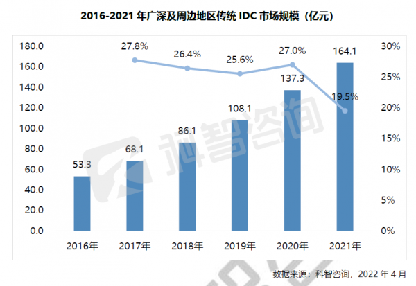 1、2021年廣深及周邊地區IDC業務市場規模達164.1億元,同比增長19.5%