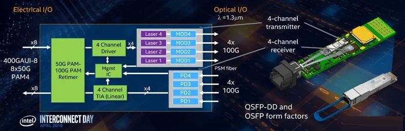 ICC訊 在AI算力需求的強勁推動下,高速光模塊市場不斷迭代,主流產品已經逐步從400G切換到800G/1.6T,Lightcounting的最新預測顯示26年將迎來800G光模塊需求的爆發式增長。在AI光互聯中,針對100m以上的互聯場景往往以單模解決方案為主,底層光芯片解決方案主要分為兩類:傳統的EML方案、新興的硅光方案(SiPh)。其中EML方案憑借其優秀的傳輸特性主要用于FR等合波場景,在2km傳輸場景更具性價比;硅光方案以其天然的易集成優勢,多用于DR等多路并行場景,傳輸距離以500m應用居多。
