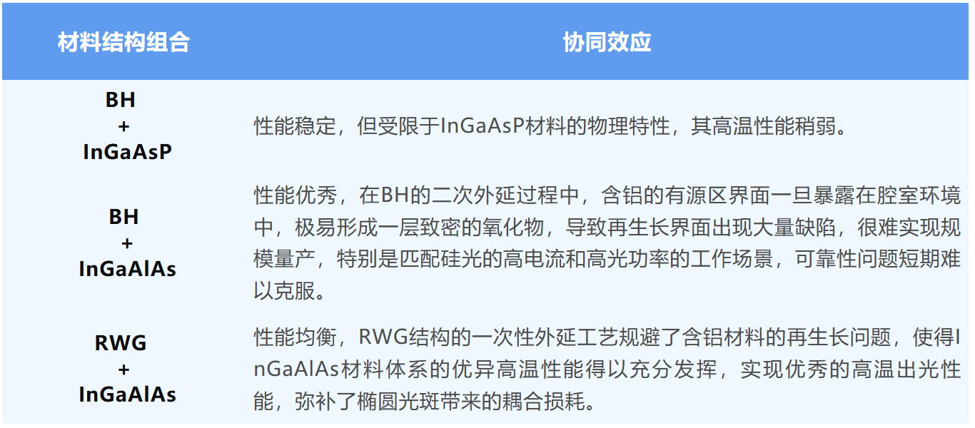 因此,目前的市場上兩種可行的組合是BH+InGaAsP和RWG+InGaAIAs。