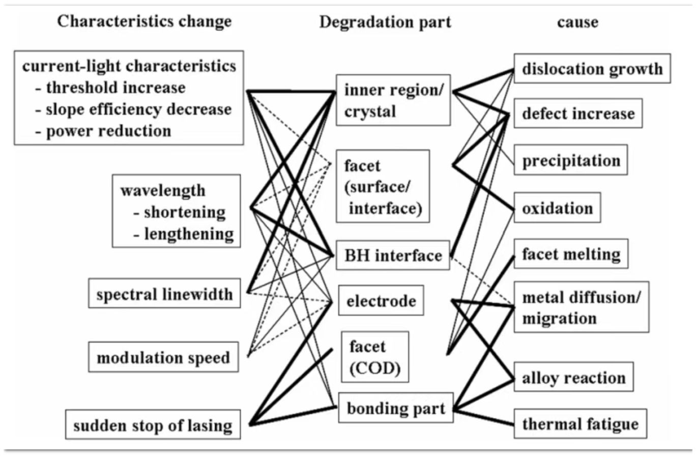 圖4:激光器芯片的典型失效模式 來源M. Fukuda / Microelectronics Reliability 47 (2007) 1619–1624