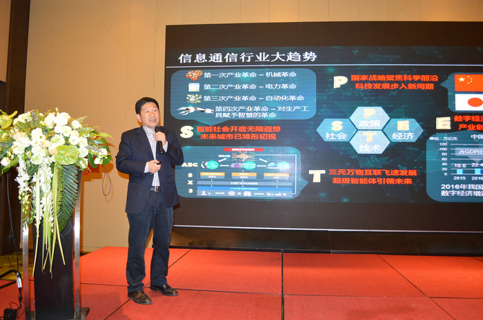 吳總認(rèn)為智慧革命呈現(xiàn)S.P.E.T格局,S是指智能社會(huì)開啟了無限遐想,在過去產(chǎn)業(yè)革命基礎(chǔ)上,未來智慧城市已經(jīng)雛形初現(xiàn)。P是指國家戰(zhàn)略聚焦在科學(xué)的前言,過去的科技積累讓人類站的更高,科技發(fā)展步入新方向,新周期。E是指數(shù)字經(jīng)濟(jì)將釋放巨大潛能,流量的劇增對(duì)帶寬容量提出極大的挑戰(zhàn),這迫使硬件基礎(chǔ)要不要發(fā)展,也推動(dòng)產(chǎn)業(yè)創(chuàng)新迎來新一輪爆發(fā)期,T是指三元萬物互聯(lián)正飛速發(fā)展,5G網(wǎng)絡(luò)不僅僅是速度的提升,更重要的是物與物的智能交互,超級(jí)智能體將引領(lǐng)未來。