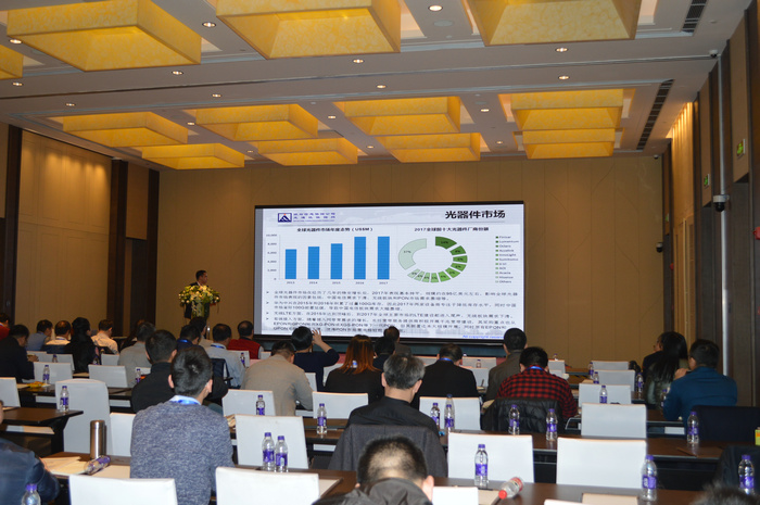訊石市場(chǎng)分析師凌科帶來主題為《全球光通信市場(chǎng)分析》報(bào)告,他向聽眾介紹了全球光網(wǎng)絡(luò)設(shè)備市場(chǎng)規(guī)模情況,中國北美市場(chǎng)之迥異,提到了光器件市場(chǎng)年度走勢(shì)以及2017年全球十大光器件廠商的分布,他最后介紹了全球和中國5G資本開支規(guī)模并作了前傳光模塊需求預(yù)測(cè)。