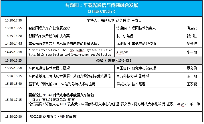 演講時(shí)間、專題:2025年9月8日, 下午14:45-15:10, 專題四《車載光通信與傳感融合發(fā)展》