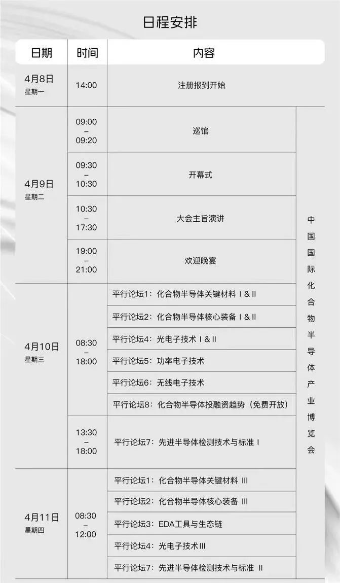 ICC訊 2024年4月8日至11日,2024九峰山論壇暨中國國際化合物半導體產業博覽會將在中國光谷科技會展中心舉行。