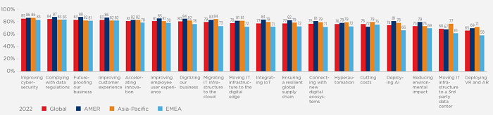 ICC訊(編譯:Nina)根據Equinix的一份報告,供應鏈短缺正在加速企業對虛擬化和數字基礎設施的投資。Equinix最近對美洲、亞太地區和EMEA(歐洲、中東和非洲地區)的2900名IT決策者進行了Equinix 2022年全球技術趨勢調查。