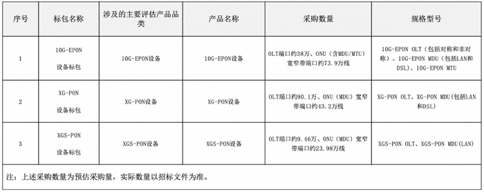 根據此前資格預審公告顯示,本次集采的三個標包合計OLT端口137.56萬口,ONU寬窄帶端口141.08萬線。
