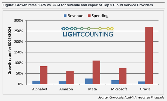 這些新紀錄是由Alphabet、Amazon、Meta、Microsoft和Oracle等云巨頭的資本開支急劇增長所驅動的。與支出的激增相比,營收的增長顯得較為溫和,這反映了市場對AI基礎設施未來需求的極高預期。OpenAI已承諾在未來8年內為AI云服務投入1.4萬億美元,而其競爭對手將不得不跟進追趕。