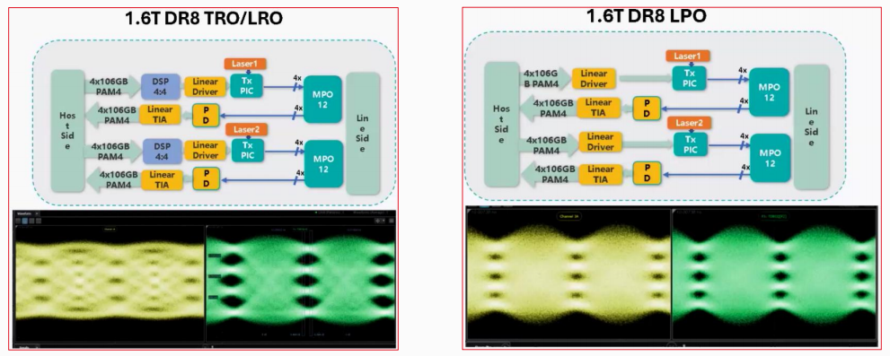 LRO (Linear Receiver Optics/Half LPO):在發(fā)射端保留DSP,接收端取消DSP,可降低約40%功耗,并兼容IEEE TP2,具備更好的互操作性。