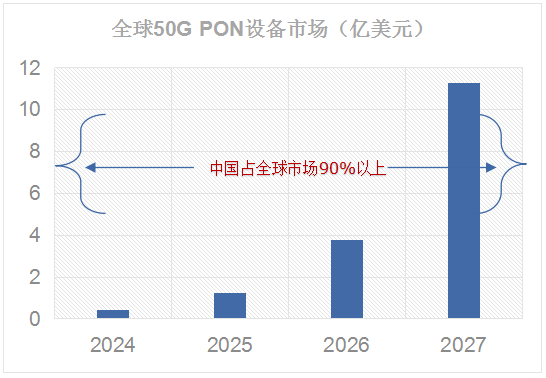 行業分析指出,在50G PON市場未來發展中,中國市場將占據絕對份額,預計到2027年該市場90%的需求將來自中國。這一預測凸顯了中國在全球光通信市場的影響力持續增強。