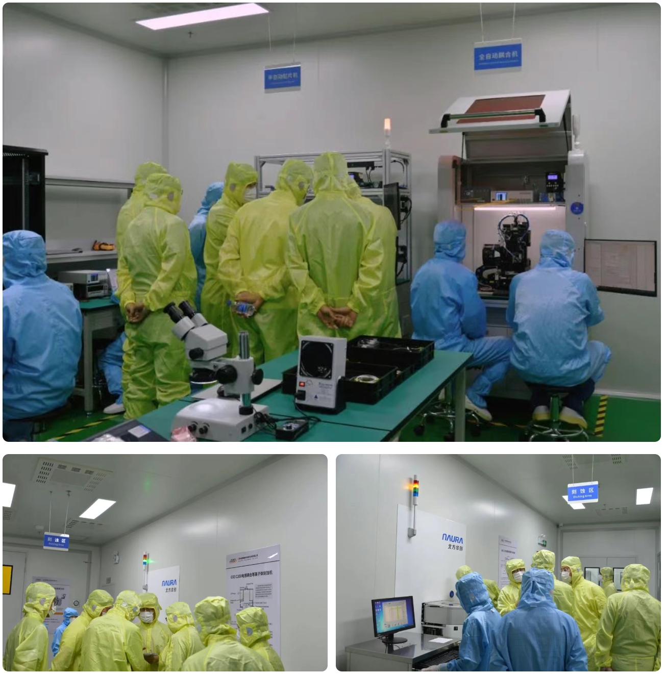 隨后,領(lǐng)導(dǎo)嘉賓們在陳偉博士的帶領(lǐng)下,實地參觀了易纜微硅光異質(zhì)集成薄膜鈮酸鋰中試線。作為國際上最早實現(xiàn)硅光薄膜鈮酸鋰異質(zhì)集成的中試平臺,這一中試線攻克了高精度鍵合與晶圓級加工等關(guān)鍵技術(shù)的瓶頸。易纜微的研發(fā)工程師們現(xiàn)場演示了薄膜鈮酸鋰晶圓級鍵合等關(guān)鍵環(huán)節(jié),以及展示了芯片測試的眼圖結(jié)果。與會的領(lǐng)導(dǎo)嘉賓們對易纜微工藝中試線的研發(fā)能力、工藝質(zhì)量及環(huán)境布局等表示了極大的認(rèn)可,對易纜微的發(fā)展前景充滿期待。