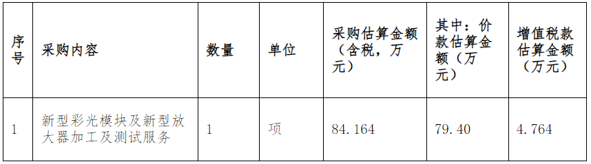 ICC訊 8月8日,中國電信研究院今日正式發(fā)布其“2025年新型彩光模塊及新型放大器加工及測試(重新詢比)”項目的成交候選人公示。采購內(nèi)容為新型彩光模塊及新型放大器加工及測試服務(wù),需進行傳輸設(shè)備樣機的試制加工,以滿足光傳輸網(wǎng)絡(luò)的搭建,最高響應(yīng)限價為人民幣79.40萬元(不含增值稅)。