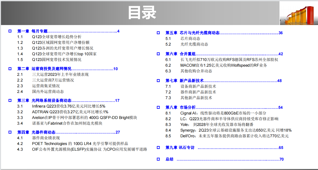 ICC訊 訊石 2023年8月《全球光通訊市場動態》專題月報出刊,會員公司可以通過郵件接收。