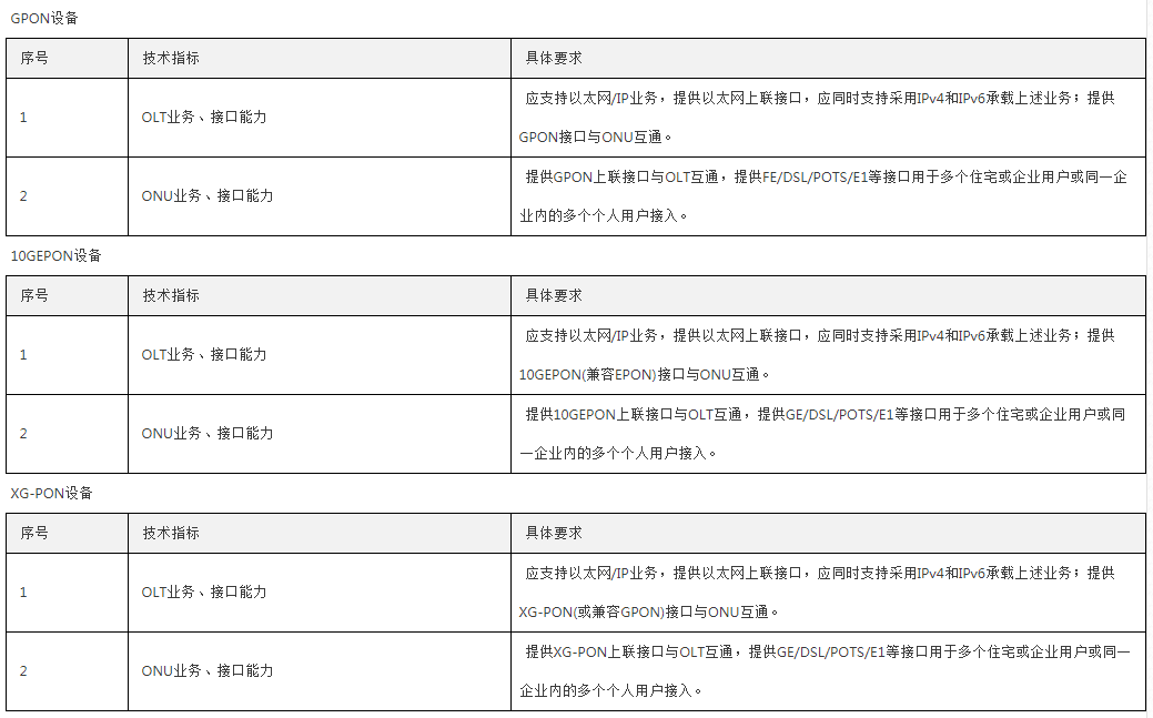 (3)XG-PON設備產品應在國內電信運營商或具有跨省互聯網絡的大型互聯網企業有不少于1年的商用經驗,要求必須同時具備XG-PON OLT、XG-PON MDU設備。