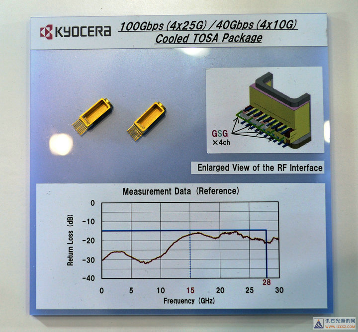 京瓷展出亮點(diǎn)產(chǎn)品三:100Gbps(4X25G)/40Gbps(4X10G) Cooled TOSA Package
