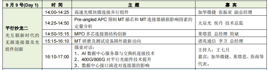 此次沙龍,我們邀請了光互聯專家王七月主持,加華微捷研發副總張振亞,太辰光技術總監侯丹,萊塔思光學創始人簡斌,譜兆通信總經理李衛等關于連接器組件,MPO 多芯連接器結構創新,MT插芯和MT研磨機等相關發展創新的分享。同時還有圓桌討論,期待與現場的參與者一起探討光連接器的良性發展和技術創新。碰撞出不一樣的思想火花。