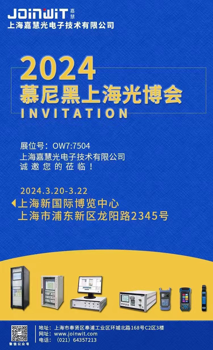 ICC訊 3月20日~22日,2024上海慕尼黑光博會(huì)在上海新國際博覽中心如期舉辦,上海嘉慧光電子技術(shù)有限公司 (以下簡稱:上海嘉慧)攜一系列先進(jìn)測(cè)試測(cè)量儀器亮相,展位號(hào):OW7.7504,歡迎業(yè)界朋友蒞臨展位觀展交流。