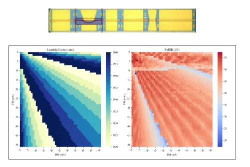 ITLA芯片:寬譜調諧+窄線寬,助力相干與WDM應用 :采用100nm C+L波段寬譜增益材料以及MZI、SOA多段集成電注入方式實現了C與L波段>40nm范圍的波長調諧,線寬低于100kHz,可支持高速相干、WDM等應用需求。