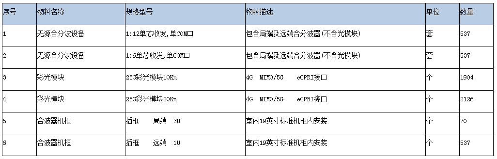 ICC訊 (編輯:Nicole) 青海移動啟動2021年無源波分設(shè)備采購項目(招標(biāo)編號:QHYD20210000169),根據(jù)2021年5G網(wǎng)絡(luò)建設(shè)規(guī)劃,預(yù)計建設(shè)5G 2.6G站點254個,按照60%站點以CRAN方式接入,解決基站前傳問題。項目擬采購無源光纖復(fù)用設(shè)備配件(非標(biāo)產(chǎn)品)4637個,無源光纖復(fù)用設(shè)備(非標(biāo)產(chǎn)品)1074套,總預(yù)算為162.3萬元(不含稅)。設(shè)置最高限價100%,超過最高限價的報價將被否決。