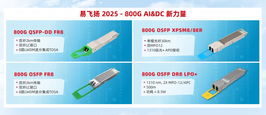 在主流800G DR8/2×FR4與VR8方案之外,易飛揚帶來三大“新勢力”,助力800G傳統數據中心向各種應用的邊界挺進!