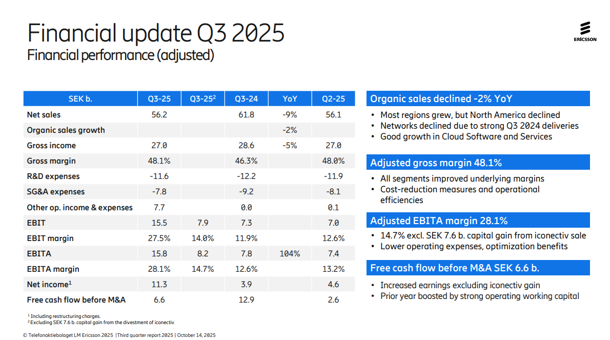 ICC訊 愛立信公布了2025年第三季度財務業績。