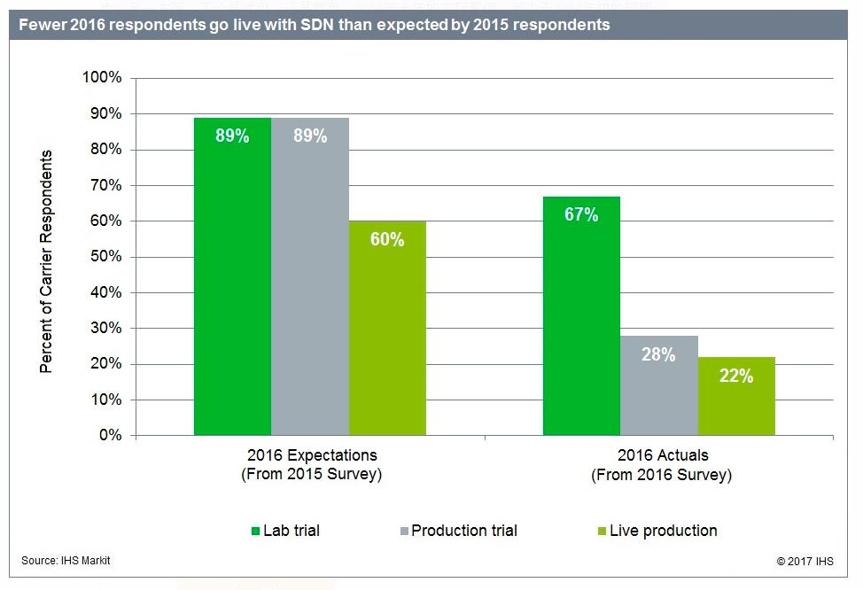 從這兩份報告來看,現在的SDN還處在上升期。不過這些也只是預測,不一定是最終的結果。實際上IHS2017年的一份問卷報告[6]就給大家潑了冷水。