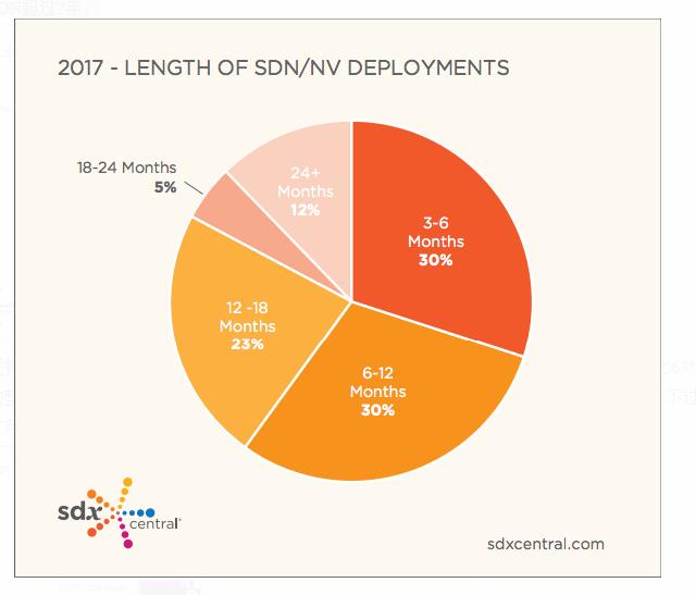 回顧SDN的發展歷史,實際上真正的起步發展也就這幾年。所以SDN的市場還是相對年輕。根據SDxCentral的2017 Network Virtualization Report[7], 大部分(83%)的SDN部署時間都很短。只有12%的用戶使用SDN超過2年。