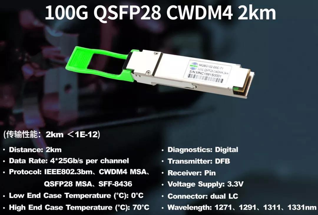 銘普光磁會(huì)展出全新研發(fā)的100G CWDM4 & 400G SR8/FR4產(chǎn)品,相較于目前市面上已有的100G CWDM4產(chǎn)品,銘普光磁最新推出的100G CWDM4 2km產(chǎn)品有以下幾點(diǎn)優(yōu)勢(shì):