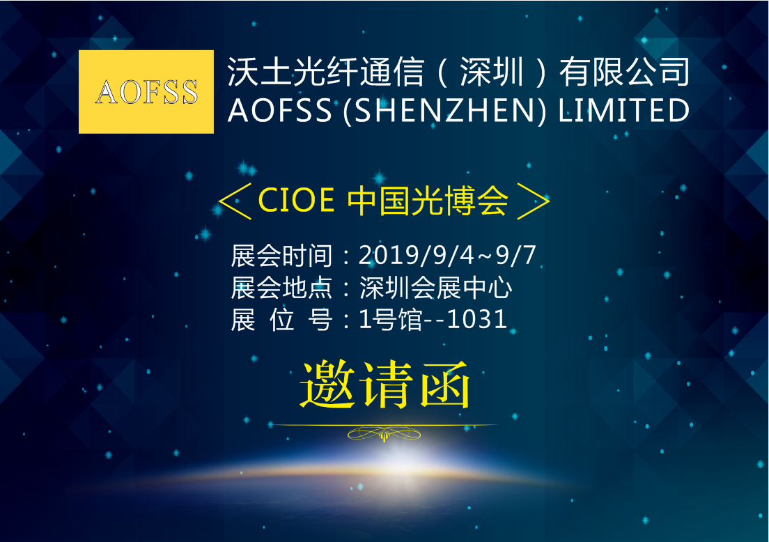 ICCSZ訊 9月4-7日,沃土光纖通信(深圳)有限公司(以下簡稱:AOFSS/沃土)將攜MEMS光開關陣列及光衰減器等系列新品精彩亮相2019年中國光電博覽會(CIOE 2019),展位:1031,誠摯邀請業界同仁及新老客戶前往觀展交流!