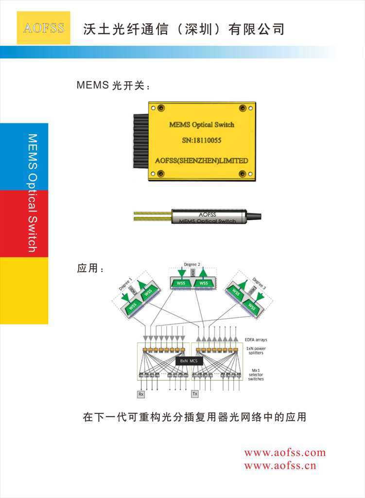 AOFSS/沃土總部位于深圳,公司主要專注于光纖傳感器元件和MEMS光學器件的研發和生產,產品包括:法拉第旋轉鏡、光纖干涉儀、MEMS可變光衰減器、MEMS光開關等,應用于電信和光纖傳感器行業。