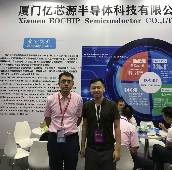 ICCSZ訊 9月4-7日,2019第21屆中國國際光電博覽會(CIOE)在深圳會展中心盛大舉行,光通信芯片提供商福建億芯源半導體股份有限公司(簡稱億芯源)隆重展示了具有自主知識產權的TIA、LA&LDD和Transceiver收發一體芯片系列。億芯源創始人李景虎博士接受訊石網編輯采訪,他向訊石介紹了本次展會的新亮點:APD電流鏡產品和10GPONONU套片。