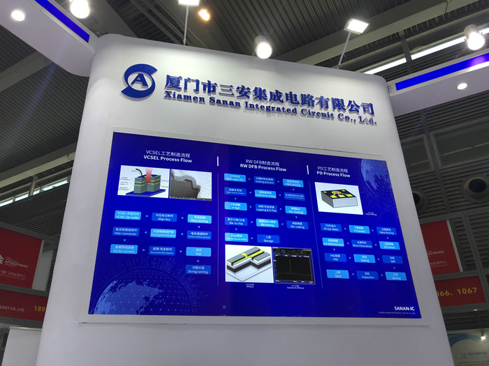 ICCSZ訊 9月4-7日,2019第21屆中國國際光電博覽會(CIOE)在深圳會展中心盛大舉行,領先的化合物半導體供應商,廈門市三安集成電路有限公司(簡稱三安集成)隆重展出Vcsel、GaAs PD、InP MPD、InP DFB等產品。