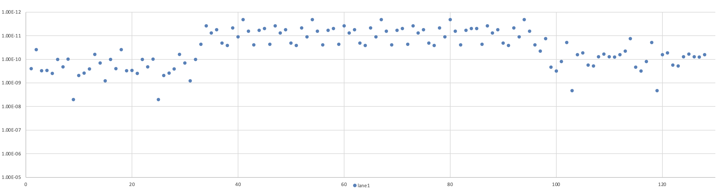 與TCS9500對接測試結果顯示,使用光纖自環,遍歷全部端口的 BER 數據如下圖,Pre FEC BER 均小于1e-08。