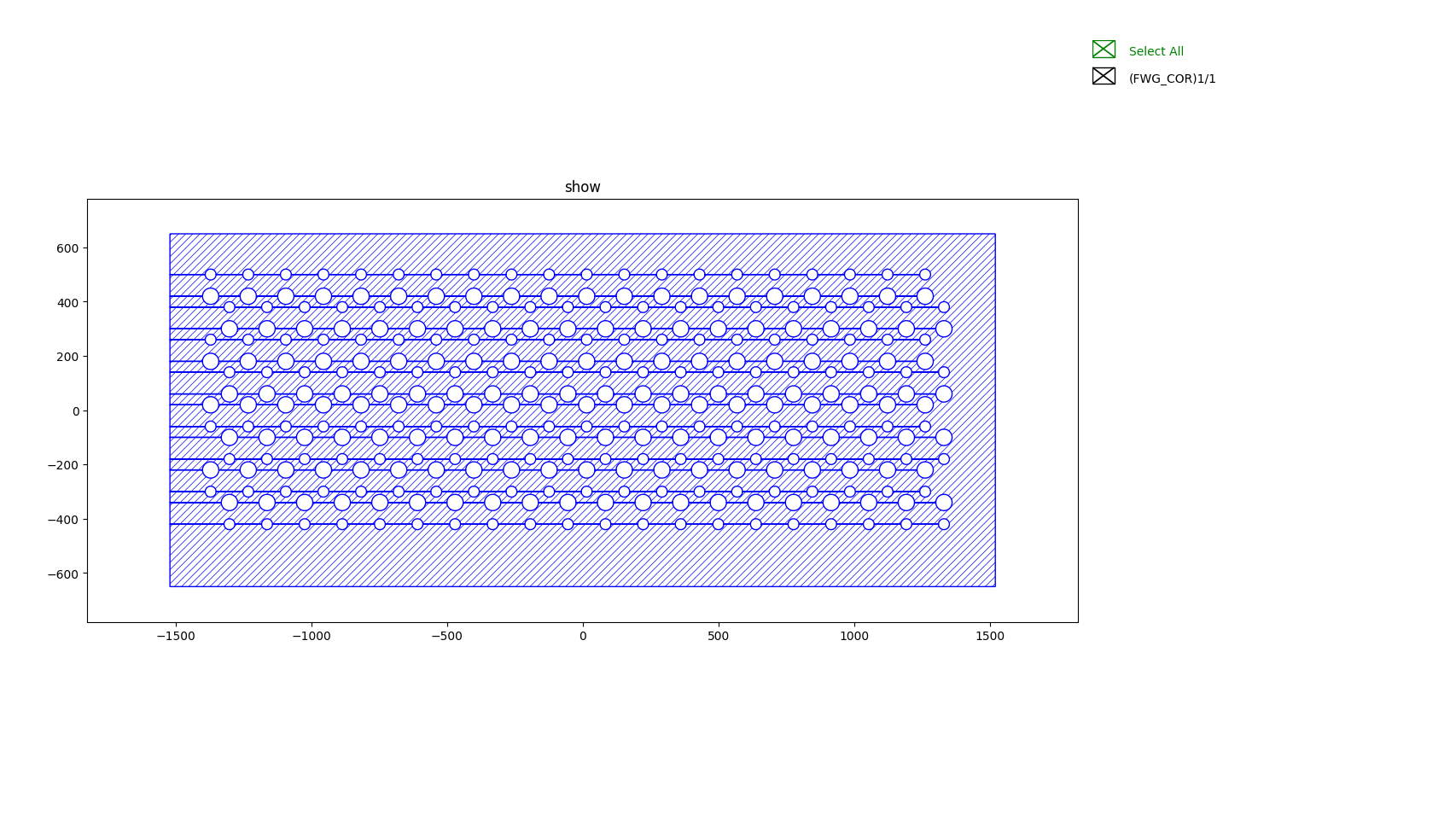 需要注意的是,版圖展示中的尺寸與論文并不一致,論文中的光子晶體參數設置與晶格常數息息相關。