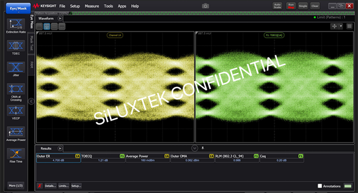 展會現場演示的DR8 800G硅光模塊,其性能極大超越了IEEE P802.3df D2.0對800GBASE-DR8的光接口規范要求, TX眼圖如下