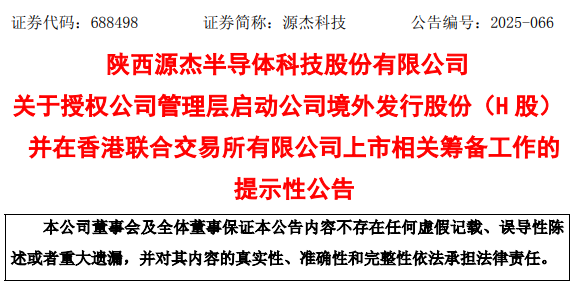 ICC訊 11 月 19 日,源杰科技召開第二屆董事會第二十四次會議,審議通過境外發行 H 股并在港交所上市的籌備議案。公司擬通過本次 H 股上市推進國際化戰略與海外業務布局,提升品牌影響力及資本實力,增強綜合競爭力。董事會已授權管理層在 12 個月內啟動前期籌備工作,后續將與中介機構商討具體推進事宜,但目前上市細節尚未最終確定。本次事項需經公司董事會、股東會審議,及中國證監會、香港聯交所等多機構備案或審核批準,最終實施存在較大不確定性,公司將按規定履行信息披露義務。